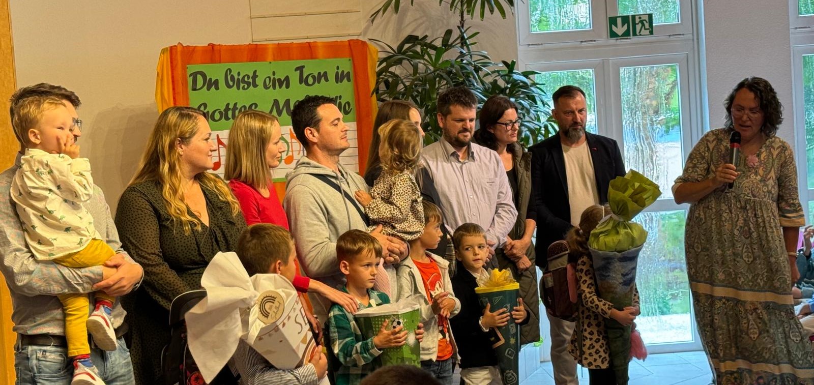 Unter dem Motto „Du bist ein Ton in Gottes Melodie“ feierten wir den diesjährigen Einschulungsgottesdienst. Der Grundschulchor und verschiedene Instrumentalbeiträge sorgten für eine feierliche musikalische Gestaltung. Pastor Brozovic hielt eine ermutigende Andacht, bevor die künftigen Erstklässler sowie die ganze Schulgemeinschaft im Segensgebet eingeschlossen wurden.