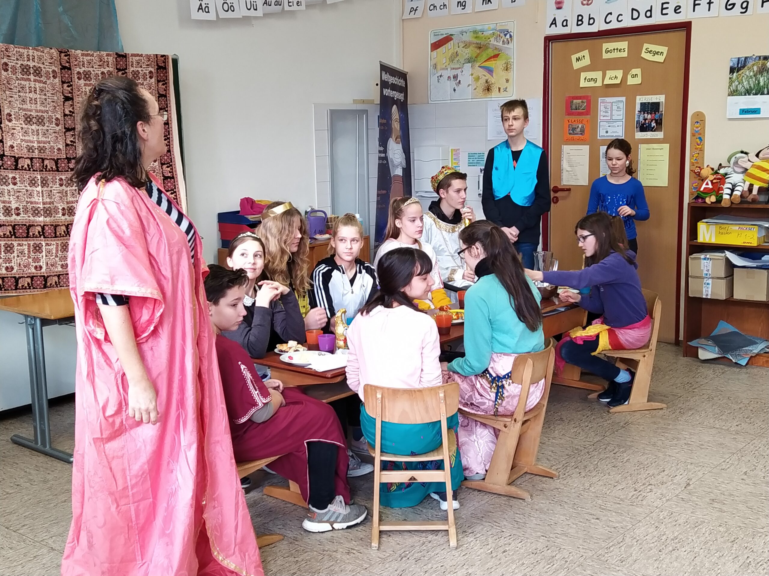 Auch dieses Jahr findet wieder unsere Projektwoche statt. Diesmal sehen wir uns den Bericht von Daniel in Babylon etwas genauer an. Zusammen haben wir die Geschichte nachgespielt und konnten so ein besseres Verständnis für die Zeit und die Geschehnisse bekommen. Ausflüge, Lagerfeuer, Reigentänze, Töpfern, Kochen nach orientalischen Rezepten und das Ausprobieren der Keilschrift ließen uns das mächtige Babylon besonders gut nachempfinden.