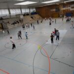 Ein besonderes Highlight war das Völkerballturnier, bei dem sechs bunt gemischte Mannschaften aus Schüler*innen aller Klassen gegeneinander antraten. Teamgeist, Fairness und jede Menge Spaß standen dabei im Mittelpunkt – und die Stimmung in der Halle war einfach großartig!